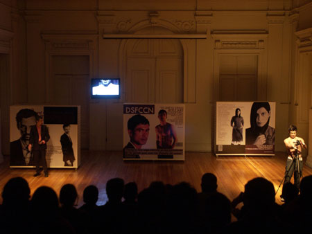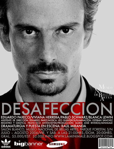 DSFCCN es un montaje transmedial que apela y negocia entre diversos temas y formas de producción de cultura, transformándose en un ejercicio de Postproducción en donde el texto es el pretexto para evidenciar y presentar al publico (desde una no lejana anécdota emocional que les permita un regresivo efecto, especular, de identificación), el ocaso de los afectos y de la comunicación, así como el fin de la ilusión-seducción y de la realidad, siendo suplantados por una red de intereses, conexiones y transacciones comerciales. Esta puesta en escena, pretende develar y presentar a la mirada del espectador de la performance teatral o del público de la instalación, la realidad que hoy vivimos, es decir, mostrar “lo real” como un juego de simulaciones en donde los referentes y la memoria han naufragado en un universo clonado e hiperreal, perdiendo sentido y trascendencia.
