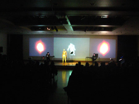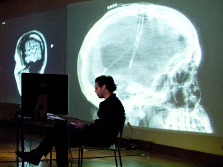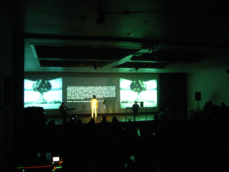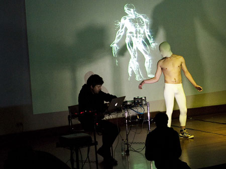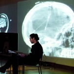 Vanitas es una puesta en escena transmedial en donde se conjugan en vivo texto, cuerpo, imágenes, música, teatro, audiovisuales y teoría, con la perfomance de un actor y de los programadores digitales de la escena. El contexto de la performance son los mismos recursos electrónicos desarrollados en la escena, ya que el performers dialogan en vivo con los voice over de los computadores, maquinas sonoras y programas que intervienen las audiovisuales proyectadas. El espacio real es vacio, espacio que durante la performance se satura de información virtual.