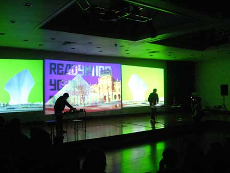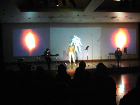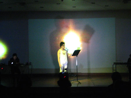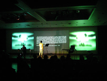 El discurso es sostenido y complementado por la performance musical de la OndaHalFoster, quienes mediante recursos electrónicos y digitales, instalan a un procesador de textos digital como su principal dispositivo escénico o vocalista. La incorporación del dispositivo de OndaHalFoster en VANITAS10 permite suprimir la presencia de actores, reemplazándolos por el procesador de textos digital de los ordenadores o por el registro visual pregrabado de ellos, permitiendo que el performer dialogue con los programas e intervenga las imágenes proyectadas con su cuerpo..