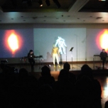 El discurso es sostenido y complementado por la performance musical de la OndaHalFoster, quienes mediante recursos electrónicos y digitales, instalan a un procesador de textos digital como su principal dispositivo escénico o vocalista. La incorporación del dispositivo de OndaHalFoster en VANITAS10 permite suprimir la presencia de actores, reemplazándolos por el procesador de textos digital de los ordenadores o por el registro visual pregrabado de ellos, permitiendo que el performer dialogue con los programas e intervenga las imágenes proyectadas con su cuerpo..