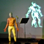 Este proyecto es un diálogo bioelectrónico, que presenta en una puesta en escena transmedial, la tesis “del fin de lo masculino y la mutación del sujeto en objeto de diseño”, entre dos personajes de ficción activados por los performers y los programas digitales en uso. El texto investiga en los cambios socioculturales que la lógica del libre mercado y los avances de la ciencia están provocando en nuestra vida cotidiana, transformando interna y externamente la realidad.